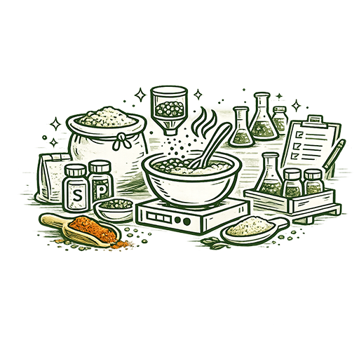 Ingredients for standardized recipes, powders and blend development.